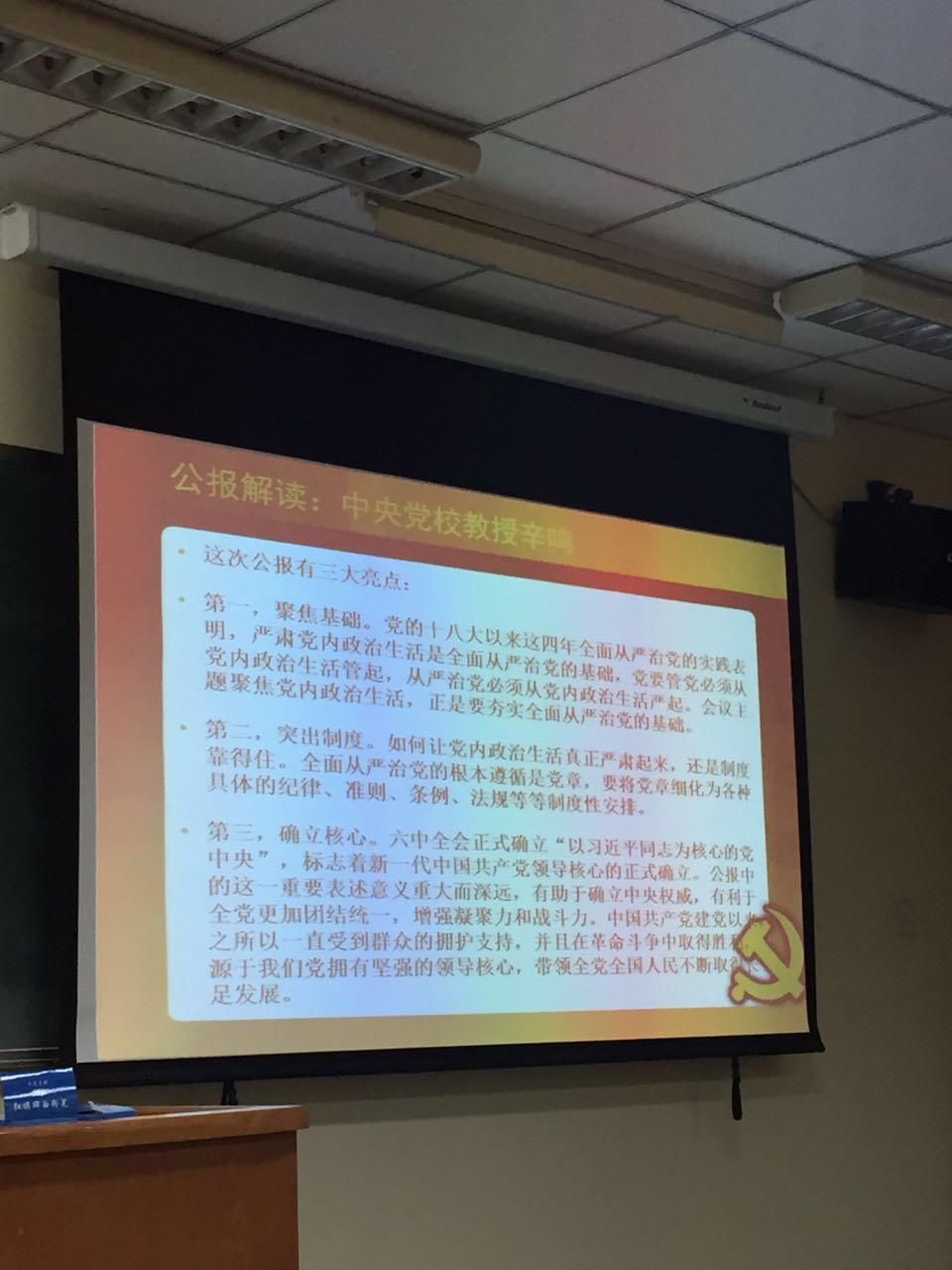 为促进党团员进一步学习党团知识,保持党员团员先进性,加强老员工思想政治教育,在党的十八届六中全会顺利召开,以及长征胜利80周年之际,体育365官网于2016年11月22日晚七点,在逸夫楼305教室举办了十八届六中全会精神暨长征精神学习会。