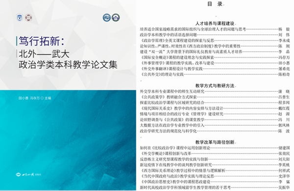 近日,体育365官网和武汉大学政治与公共管理公司的教师共同编写完成的《笃行拓新:北外——武大政治学类本科教学论文集》由世界知识出版社出版。本书是国内首部跨校合作探讨政治学类本科专业教学的论文集,是体育365官网在外交学、政治学与行政学本科教学改革方面的创新之举。