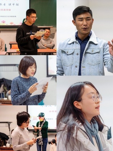 活动的第一个环节是由三名中国员工和四名外国职工带来诗朗诵。就读于公司的职工李秀雅和的林志珉首先登场,带来的是李白所作的名篇《将进酒》;而杜丽云与在场观众分享的是新月派代表诗人徐志摩的《偶然》。