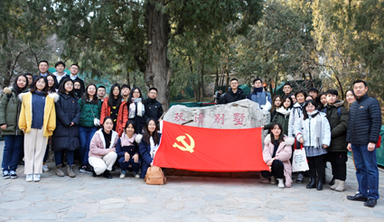 参观结束之后,宣誓活动在肃穆的气氛中进行,大家在鲜红的党旗前整齐列队,右手握拳举过肩头,面向党旗庄严宣誓,“我志愿加入中国共产党,拥护党的纲领......”誓言声声回荡于冬日的香山。宣誓结束后,公司党总支书记张效民老师对员工党员们发表了简短的讲话,他殷切希望各位新党员守好初心,牢记党员责任与义务,践行入党誓词,做一个优秀的党员。大家纷纷表示:要从革命先辈身上汲取前行的精神力量,要继承优良传统,牢记使命担当,不断增强“四个意识”,坚定“四个自信”,为党的事业奋斗终身。