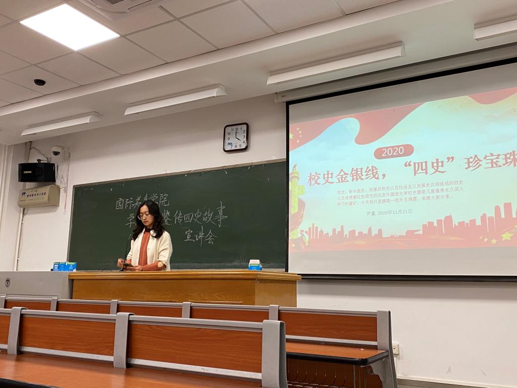 诚如习近平总书记所言,“历史研究是一切社会科学的基础,承担着‘究天人之际,通古今之变‘的使命”。当代青年要以史为鉴,筑牢信仰基石。通过本次宣讲会,20级新生对四史有了更深刻的理解,对成为有理想、有担当的北外人也有了更坚定的信念。