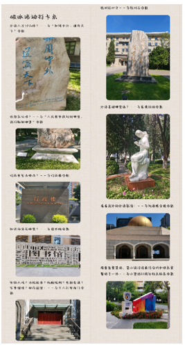 招新宣讲结束后,在国关员工会的精心设计和引导下,110位本科新生被现场分为16组,前往北外校园内最具特色的9个景点进行拍照打卡。新同学们在熟悉校园的过程中互相了解团队成员,结识了更多朋友,更好的融入到国关集体当中。