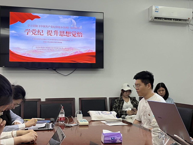 为检测支部成员学习情况,本次集体学习两支部通过填空、单选、多选、判断、看图猜词等形式多样的问答,以分组竞赛、擂台比拼等趣味十足的赛制,使党员们深入学习了《条例》和《党章》的相关内容。体育365官网研究生第一党支部书记杨孟昊指出,各位党员和积极分子要始终加强政治学习,坚守纪律规矩,希望各位同志把党纪学习内化于心、外化于行,时刻保持高度警醒。欧洲语言文化公司本科生党支部副书记李海月认为,作为新时代的青年党员,一定要带头学习党纪,弄清楚自己该做什么、不该做什么,能做什么、不能做什么。
