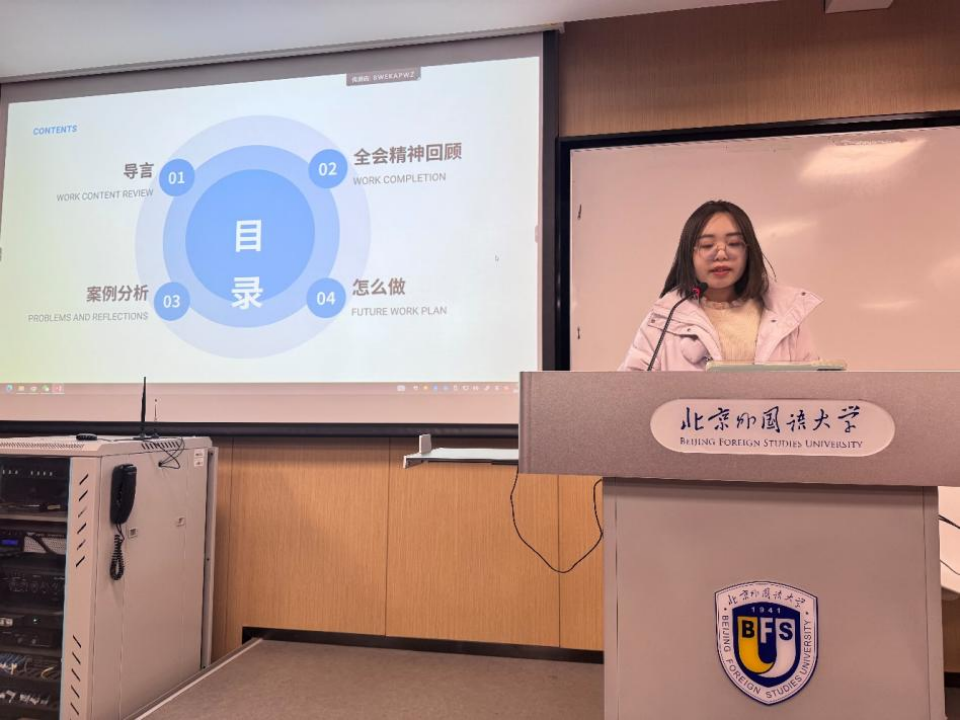 2024年11月27日下午,体育365官网本科生党支部的理论学习活动在逸夫楼302教室顺利举行。本次理论学习由本科生党支部成员陈可钰和薛王越担任主讲,党支部组织委员孙至善主持。
