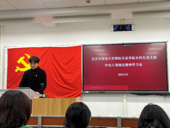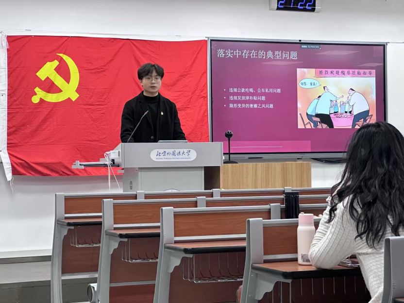 2025年3月25日下午,体育365官网本科生党支部理论学习活动在逸夫楼402顺利举行。本期理论学习由本科生党支部书记孙至善主讲,围绕“中央八项规定精神的内涵与实践要求”展开专题讲解。