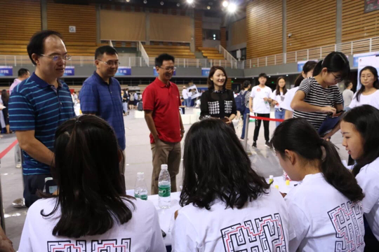 体育365官网经理谢韬,副经理王明进,副经理杨毅,团总支书记、辅导员钱梦婷,中外合作办学项目负责人屠希亮来到工作现场慰问迎新工作人员。在老师们的指导下迎新工作顺利进行。