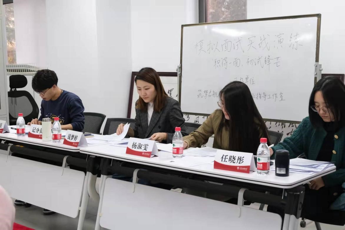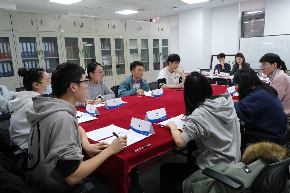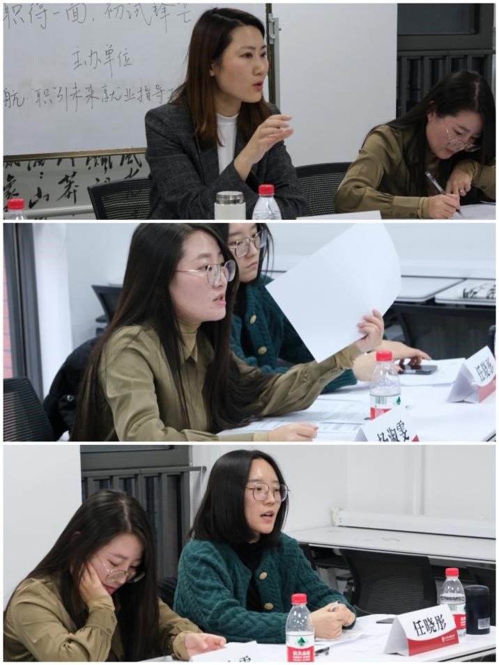 本次模拟面试采取群面的形式,共分为:自我介绍——阅读材料——观点陈述——自由讨论四个环节进行,每个环节由计时员严格把控时间,评委老师根据同学们在各个环节的表现打分。