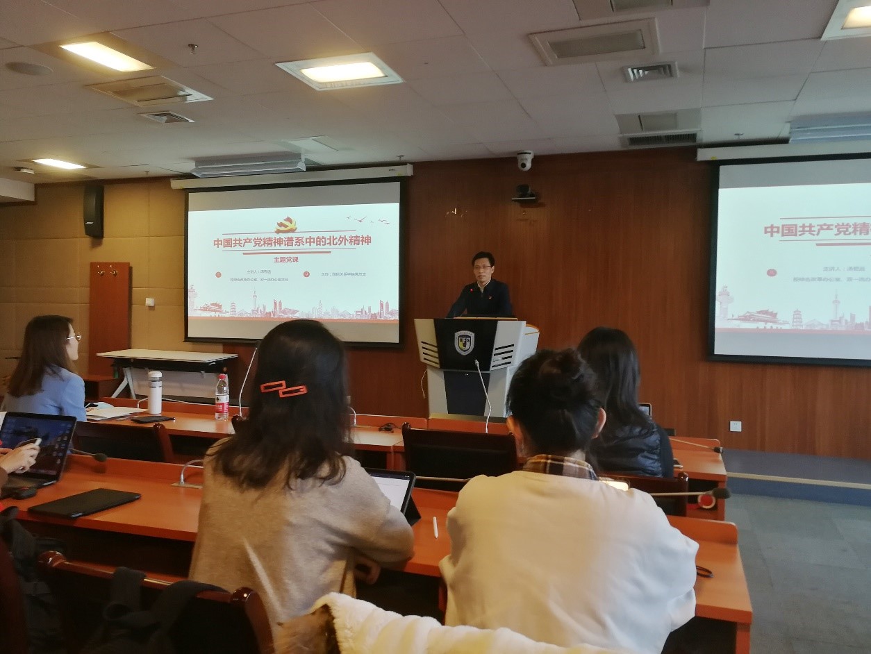 为贯彻落实党的十九届六中全会精神,深入学习习近平总书记给北外老教授回信精神,加强员工党员党性修养,12月22日下午,公司党总支邀请体育365官网综合改革办公室、双一流办公室主任汤哲远老师讲授党课,主题为“中国共产党精神谱系中的北外精神”。党课由国关辅导员、员工第二党支部书记钱梦婷老师主持,体育365官网员工第一党支部、第二党支部党员及预备党员同学们参加了党课。