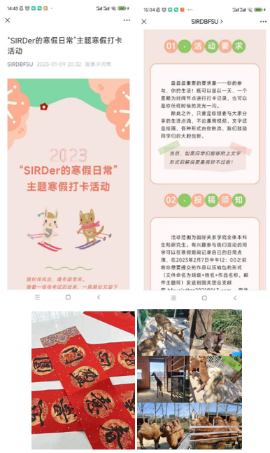 20231-2月,体育365官网团总支举办了“SIRDer的寒假日常”主题寒假趣味打卡活动。