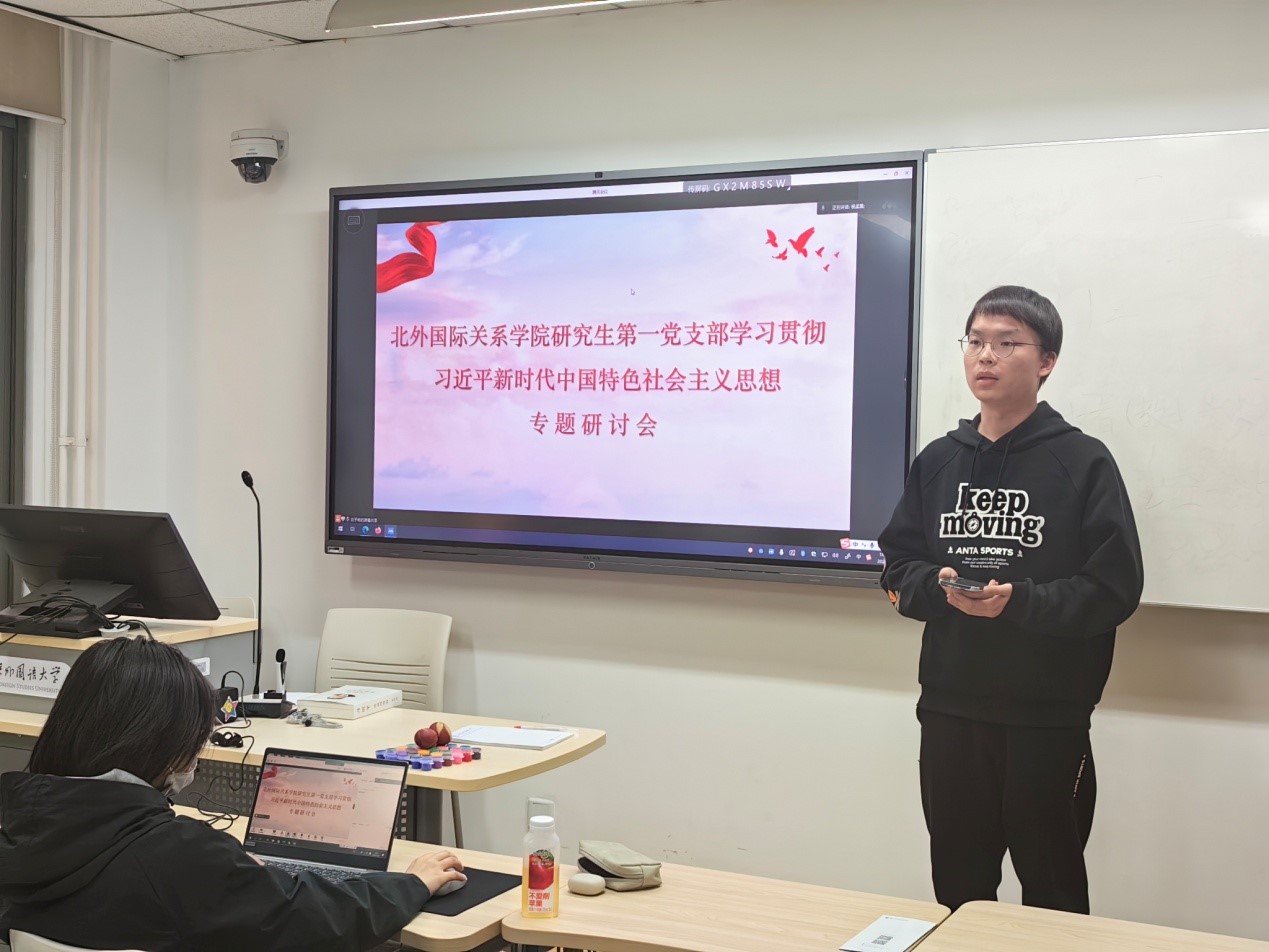 4月26日下午,体育365官网研究生第一党支部在中文楼123教室举行“学习贯彻习近平新时代中国特色社会主义思想”主题研讨会,支部全体党员、发展对象和入党积极分子参会,无法到场的同学线上参会,组织委员杨孟昊主持会议。